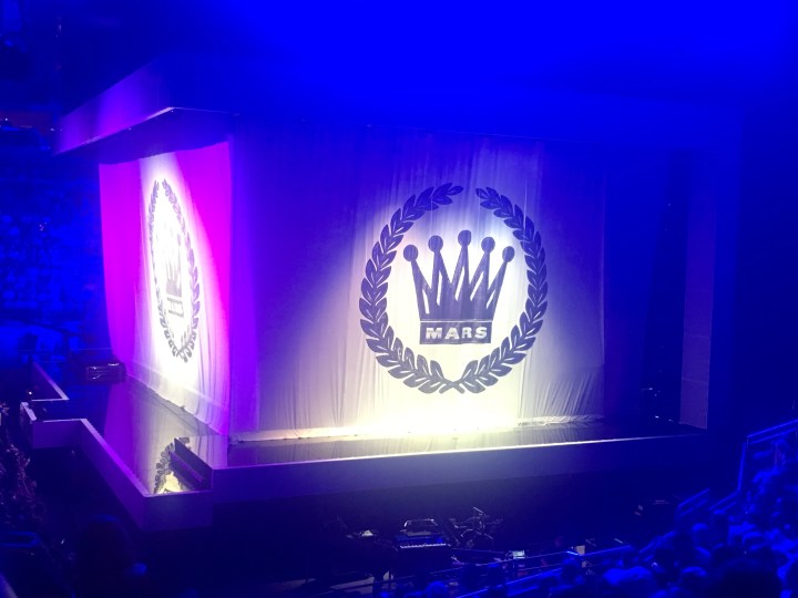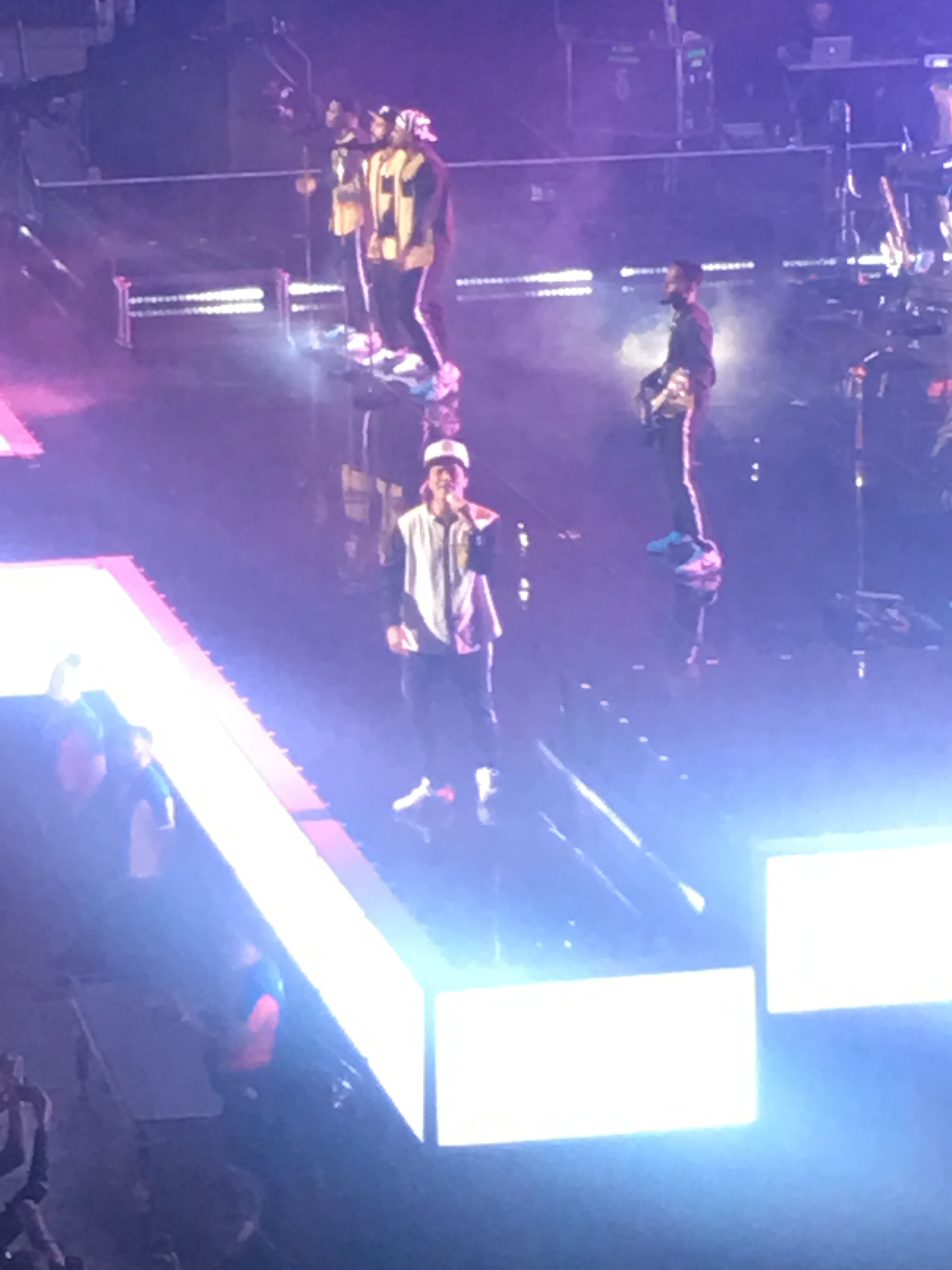 Soon after the stage was prepared for Bruno. We were sitting in the lower tier, on the end of row U, which meant our view of the stage was amazing! Well done Mum for getting such good seats! 😍